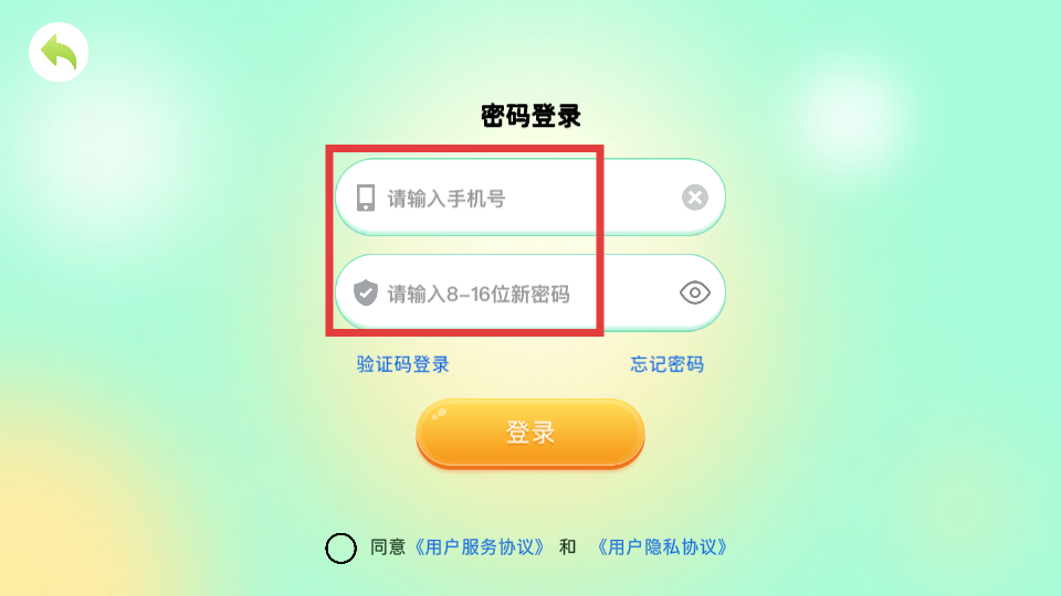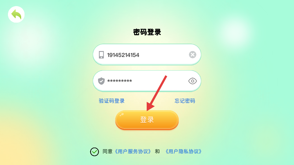 4、勾選同意《用戶服務(wù)協(xié)議》和《用戶隱私協(xié)議》后點(diǎn)擊【登錄】,完成密碼登錄操作。