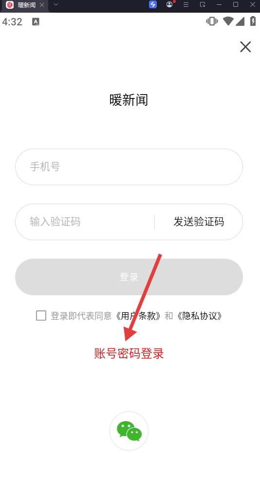 3、在登錄界面,點(diǎn)擊【賬號(hào)密碼登錄】。