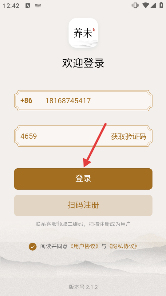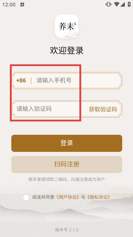 3、在歡迎登錄頁面輸入手機號碼,點擊【獲取驗證碼】,輸入收到的短信驗證碼,勾選閱讀并同意《用戶協(xié)議》與《隱私協(xié)議》。