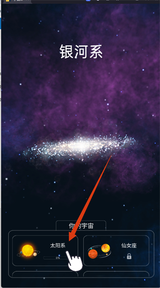 1、進(jìn)入游戲后,選擇【太陽系】開始探索,可先了解游戲的宇宙場景布局,為后續(xù)操作做準(zhǔn)備。