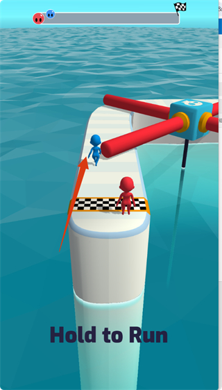 2、比賽中長(zhǎng)按屏幕【Hold-to-Run】控制角色奔跑,注意觀察對(duì)手的位置,調(diào)整奔跑節(jié)奏,爭(zhēng)取領(lǐng)先。