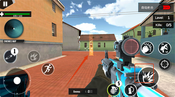 4、射擊時瞄準目標,注意彈藥數(shù)量,利用掩體躲避攻擊,完成殺敵任務,推進游戲進程,提升戰(zhàn)斗技巧。