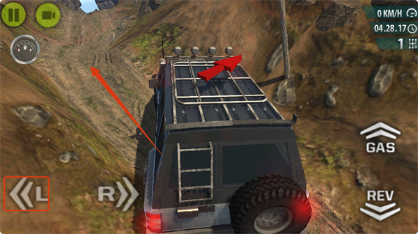 3、遇到復(fù)雜地形時,使用左側(cè)【L】按鈕調(diào)整方向,按照箭頭指示行駛,注意車輛速度,確保安全通過。