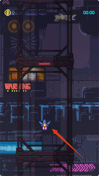 3、游戲中操控飛船移動(dòng),注意場(chǎng)景中的障礙物和【W(wǎng)ARNING】提示,避開危險(xiǎn)區(qū)域,確保飛船安全行駛。