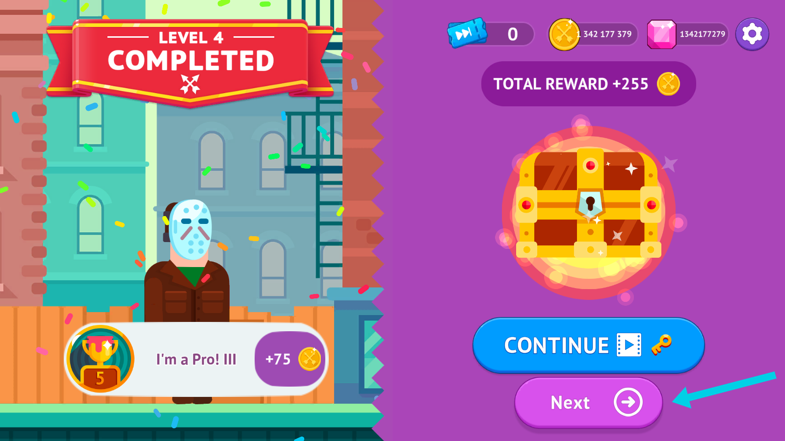 4、關(guān)卡完成后點(diǎn)【Next】,繼續(xù)挑戰(zhàn)新關(guān)卡,還能開(kāi)寶箱拿獎(jiǎng)勵(lì),一路通關(guān)解鎖更多內(nèi)容,超有成就感呢。
