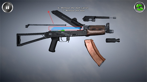 4、拆分過程詳細且步驟清晰,玩家需按流程完成槍械拆卸與組裝,每一步操作都能幫助玩家深入了解槍械各部件的作用。